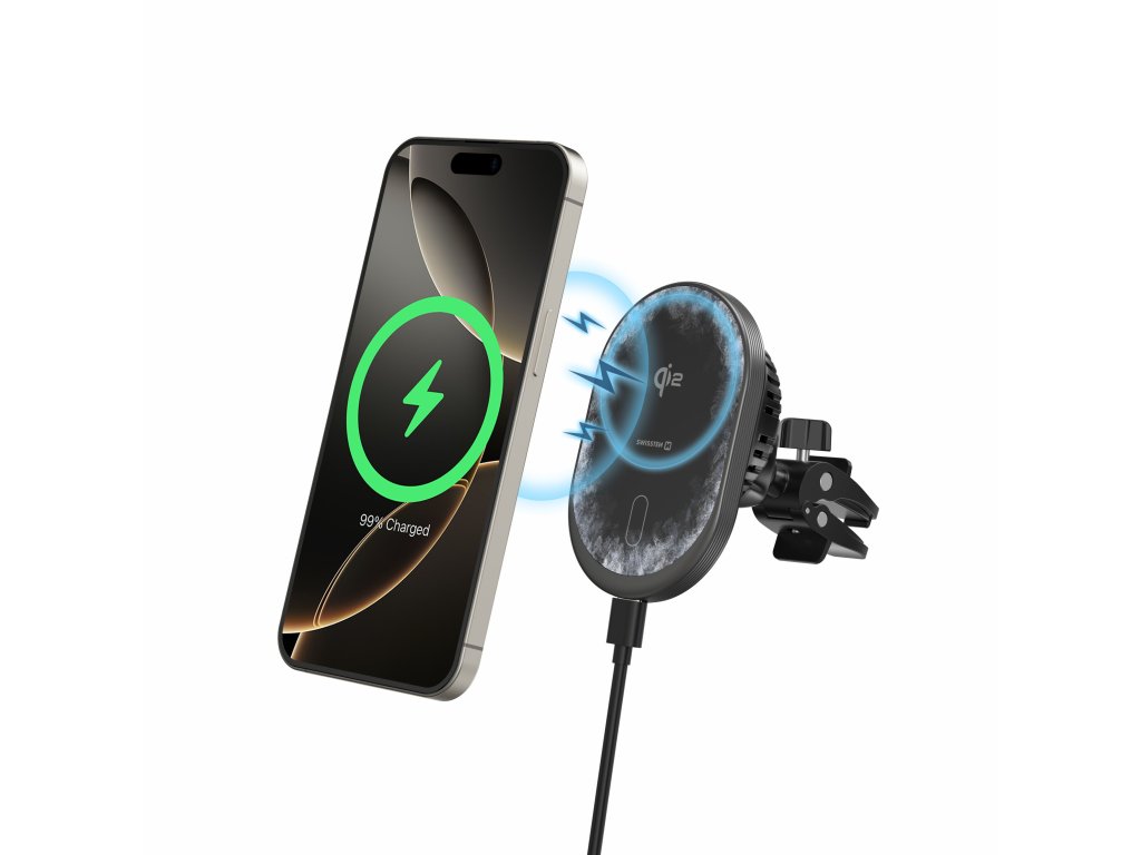 SWISSTEN Magnetický držák do ventilace auta MagRide s bezdrátovým nabíjením Qi2 15W (kompatibilní s MagSafe)