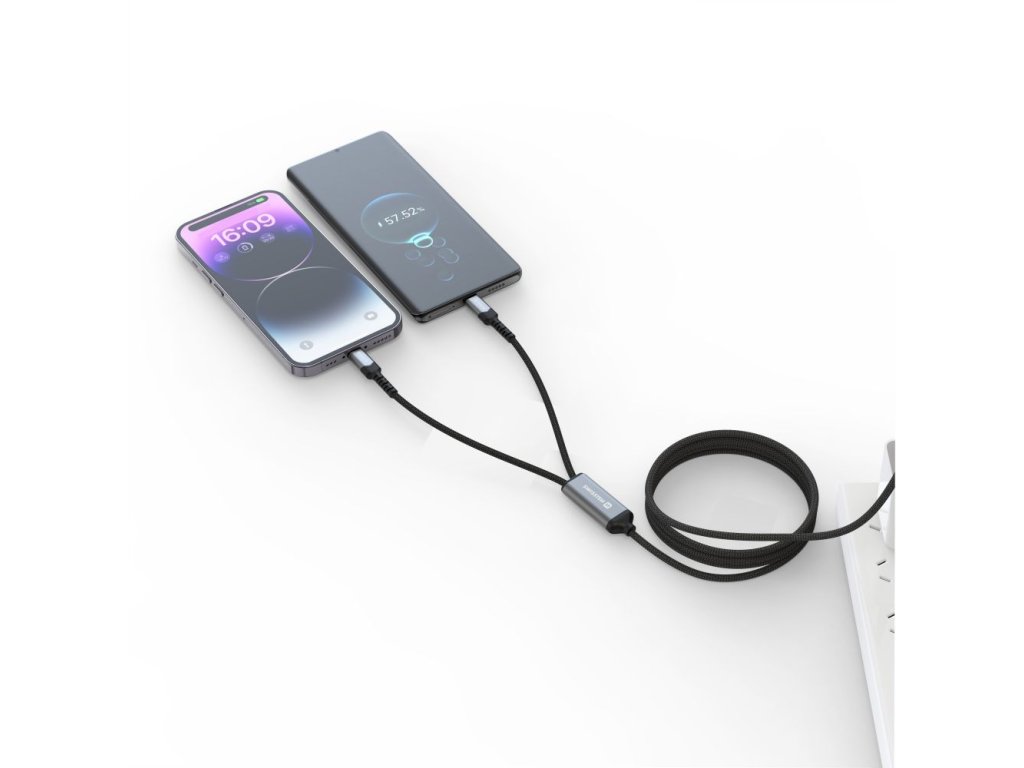 Tenhle kabel není jenom šňůra – je to multitaskingovej ninja. Nabíjí dvě zařízení zároveň, výkon rozděluje chytře a nepřehání to s teplotou. A díky 100 W na USB-C klidně nakrmí i notebook, zatímco vedle nabíjí iPhone. Kámo, tohle je nabíjecí polyamor.