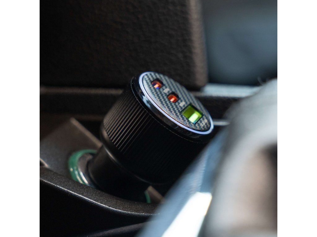 Profesionální autonabíječka s podporou PD 3.0 a QC 4.0, navržená pro rychlé nabíjení notebooků, tabletů i smartphonů. Celkový výkon až 95 W zvládne napájet i náročná zařízení během jízdy. Součástí balení je 1m USB-C/USB-C kabel (3A, 60W, soft silicone). Modrý LED prstenec usnadňuje připojení kabelů i ve tmě.