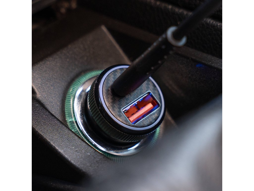 Díky malým rozměrům a světelnému kroužku je připojení jednoduché i ve tmě. Nabíječka nenarušuje vzhled interiéru vozu a snadno se přenáší.