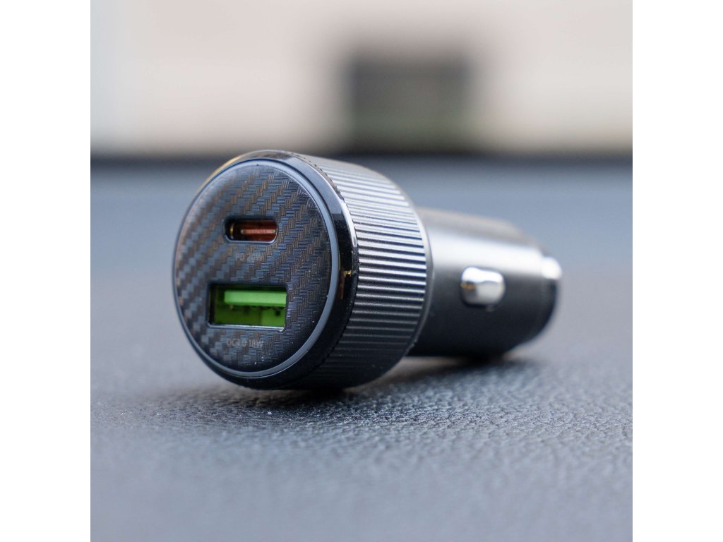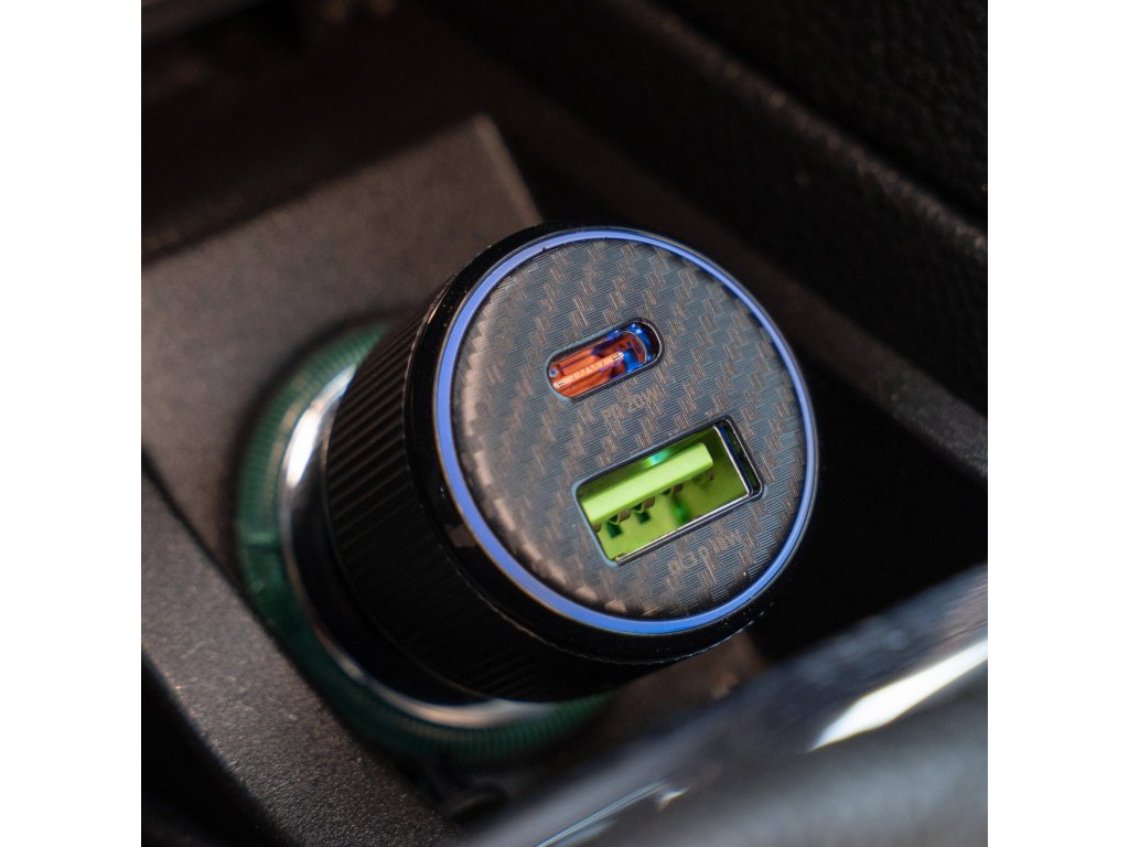 Výkonná a kompaktní autonabíječka s podporou rychlého nabíjení PD 3.0 a QC 3.0. Díky kombinaci portů USB-C a USB-A dokáže rychle a bezpečně dobíjet až dvě zařízení současně. Modré LED osvětlení v obvodu nabíječky usnadňuje připojení kabelu i při jízdě v noci.