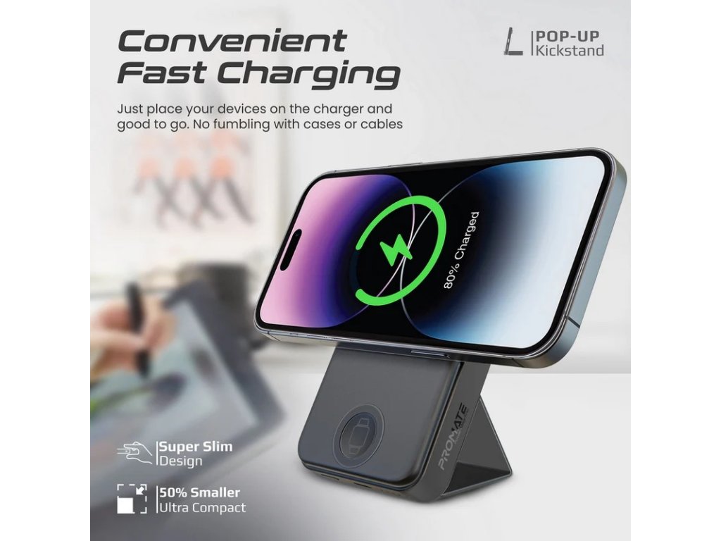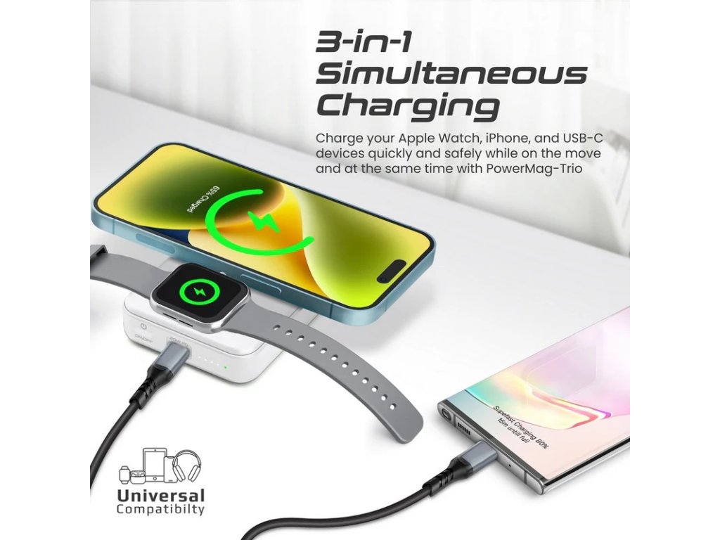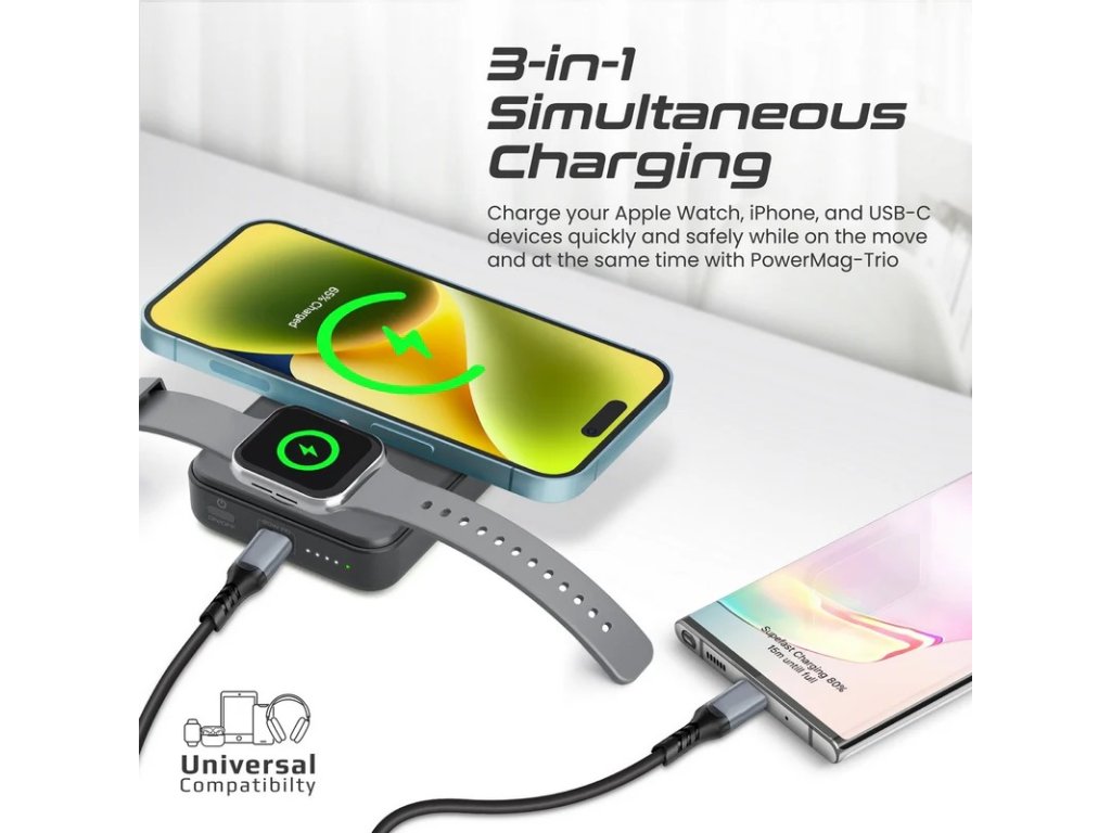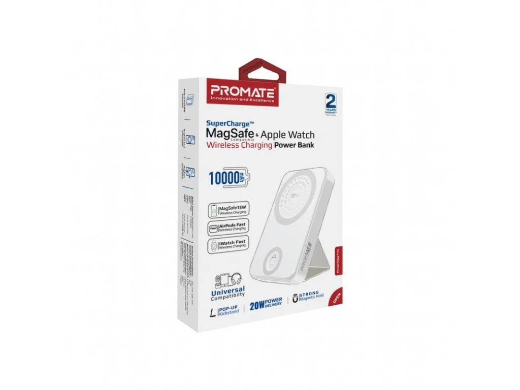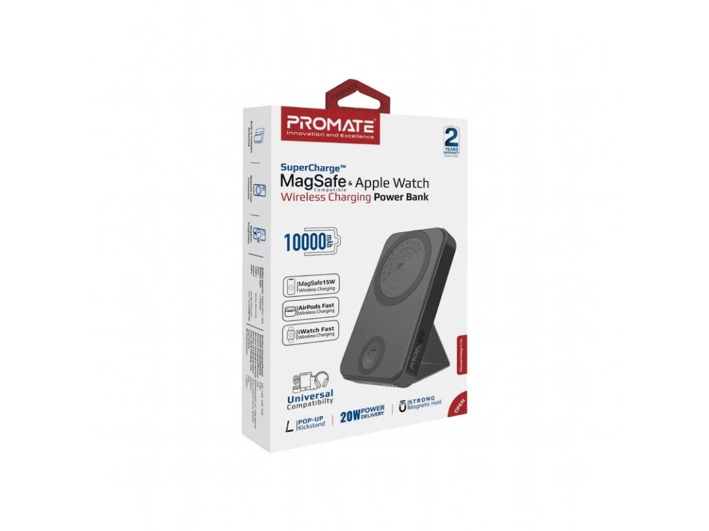 PROMATE PowerMag -Trio Super Charge MagSafe a Apple Watch Powerbanka s bezdrátovým nabíjením, 10 000 mAh
