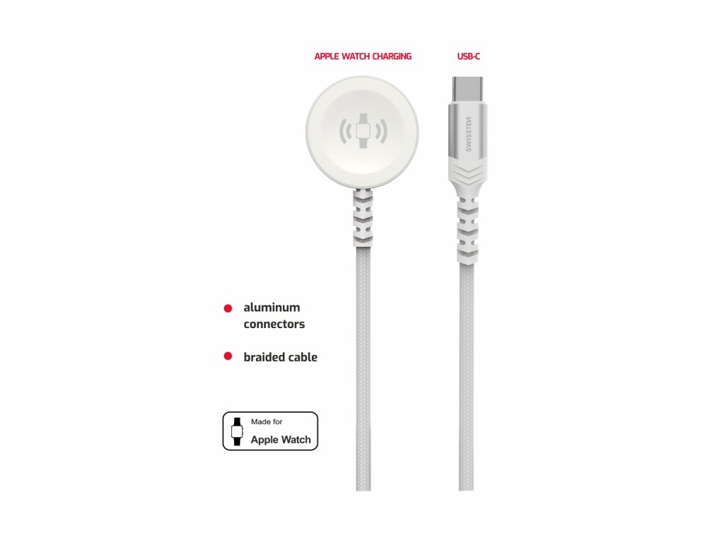 SWISSTEN Magnetický opletený kovový kabel pro Apple Watch, USB-C, 1,2 m, bílý