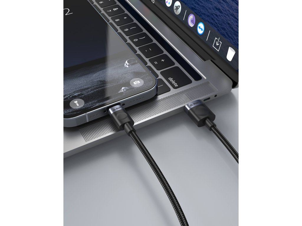 Kabel je vybaven odolným textilním opletem, který zajišťuje vyšší životnost, chrání proti opotřebení a minimalizuje riziko zalomení. Elegantní černé provedení navíc vypadá skvěle v každém prostředí – od kanceláře po domácnost.