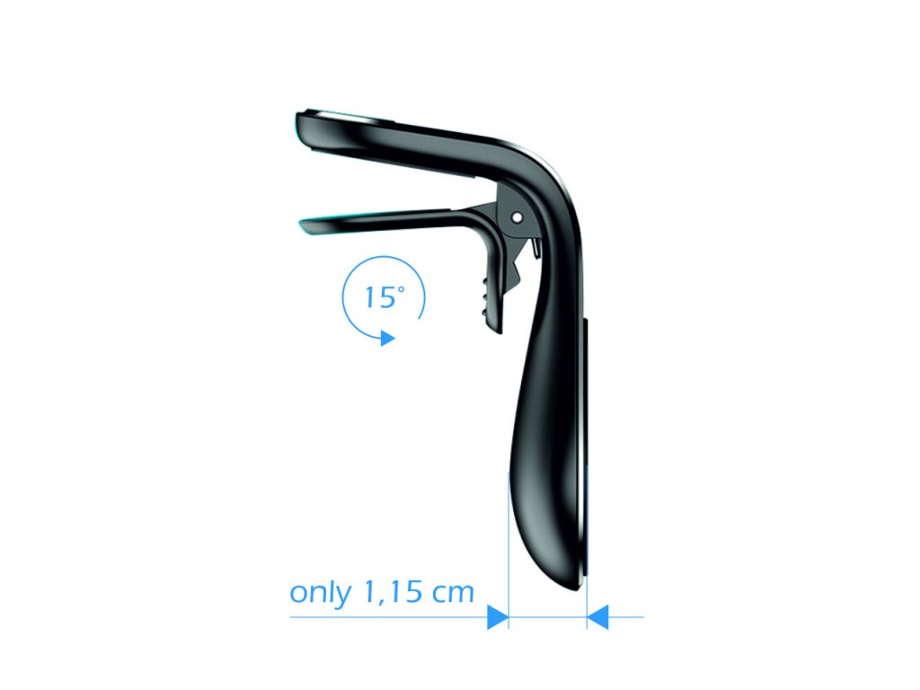 Minimalistický magnetický držák na mobil a tablet do auta nepřekáží díky instalaci do mřížky ventilátoru ve výhledu z čelního skla. Vzhledem k tomu, že jeho šířka je pouhých 1,15 cm, nebude tento držák telefonu ani v autě nikde přečnívat a přitom bezpečně udrží váš mobil na místě.