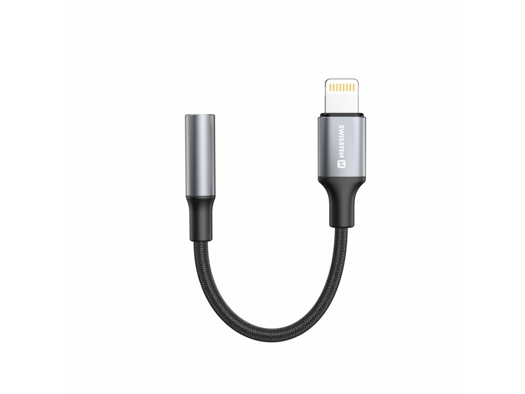 Audio adaptér SWISSTEN Textile LIGHTNING (samec) / 3,5mm AUX, Délka: 15 cm, Využití: Pro připojení sluchátek a reproduktorů k chytrým zařízením bez klasického audio jack vstupu, Textilní materiál. Baleno v blistru SWISSTEN.