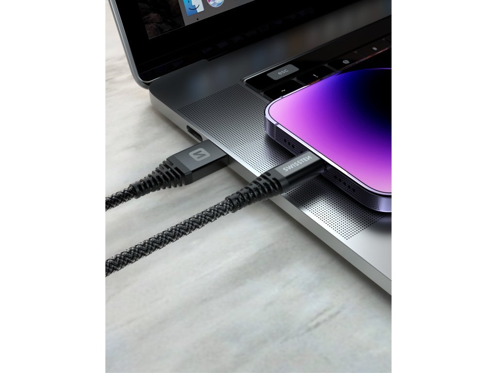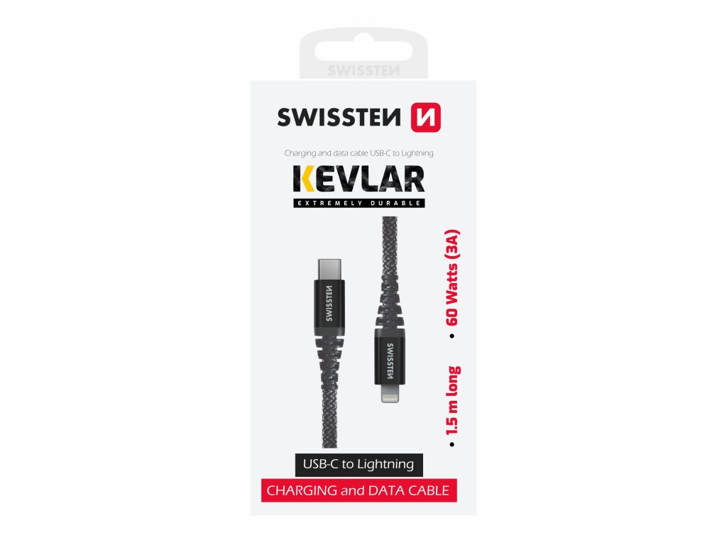 SWISSTEN datový kabel KEVLAR, USB-C/Lightning, 60W, 1,5 m, antracit