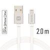 Datový kabel Swissten USB/Lightning s kvalitním textilním opletením a kovovými kryty konektorů. S licenci MFi máte jistotu, že Váš kabel nepřestane fungovat s novější verzí iOS. Díky délce 2,0m je vhodný do nákladních aut, do aut pro rodiny nebo pro lidi, kteří často dobíjejí a mají daleko zásuvku a v době dobíjení potřebují volat. Kabel je zesílený a přenese tak větší proud (až 3A) a zvládne i rychlý přenos dat 480 Mb/s. Životnost kabelu v ohybu je více než 10000 ohybů. Kovový kryt konektoru je odolnější proti mechanickému poškození než běžné plastové kryty konektorů.