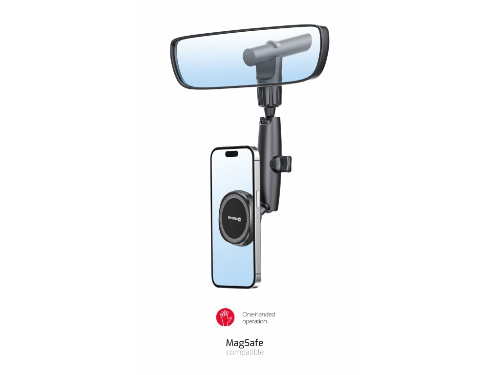 Tvoje ruka je tvuj nejlepší kámoš. To už asi víš. A stačí i na ledacos jinýho než na ty tvoje prasárničky. Třeba na tenhle SWISSTEN magnetickej držák do auta MIRROR. Jednoduč ho vybalíš, jednoruč pověsíš, jednou rukou na něj přiklapneš svůj iPhone. Jednou rukou ho zas v pohodě sundáš. Když profrčíš největší ďouru v celym silničnim vesmíru, s mobilem to ani nehne. Díky MagSafe magnetum nikdy nespadne. A díky umístění na zpětnym zrcátku ho máš furt v merku. Ale radši sleduj cestu, ať ti iPhone i s držákem neproletí čelnim sklem.