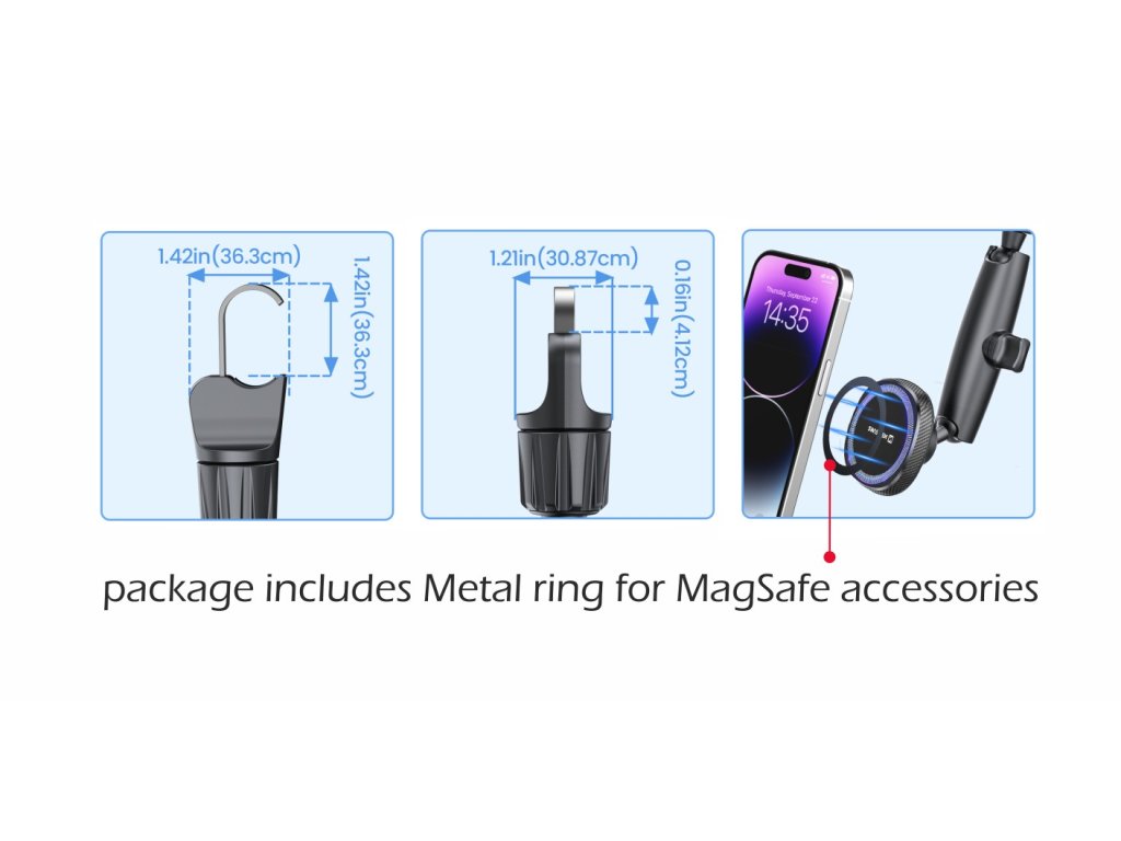 Taková malá, trochu zvláštní tyčka. Na jednom konci háček, na druhym malá magnetická placička. Pro staromódní jablíčkáře i Androiďáky přibalujem i nálepku na zadek mobilu, která zkrotí MagSafe magnety.