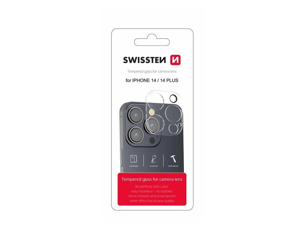 Ochranné sklo na čočky fotoaparátu pro svůj Apple iPhone dostaneš bezpečně uložené v elegantním červenobílém blistru Swissten.