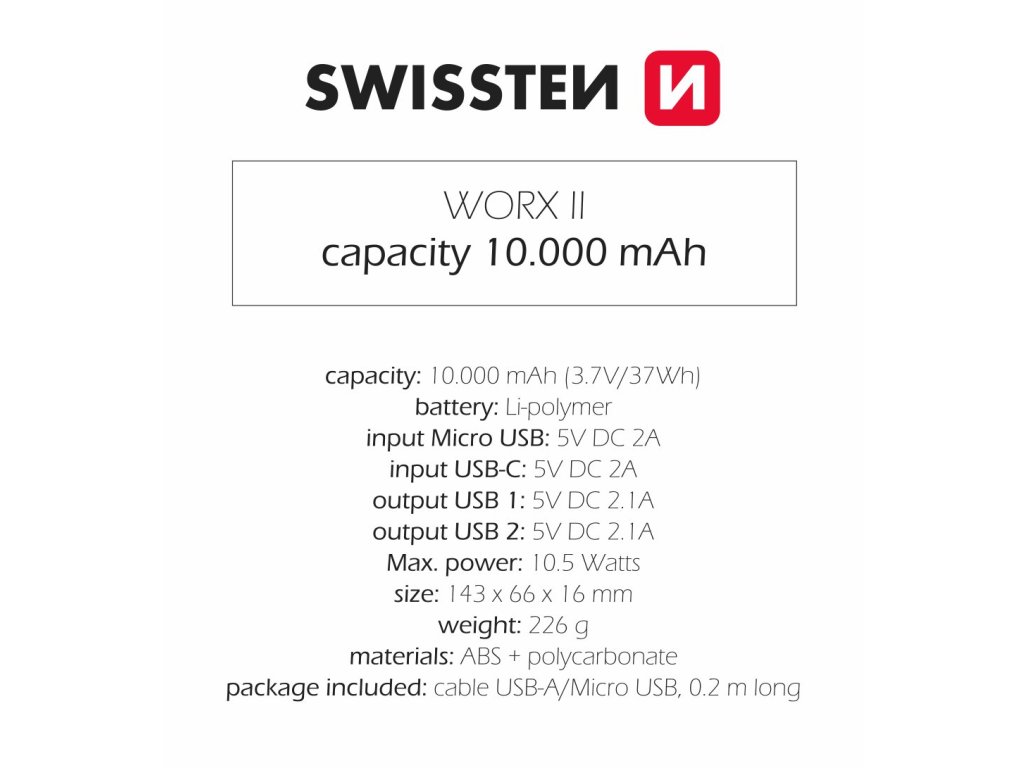 SWISSTEN Powerbanka WORX II 10000 mAh
