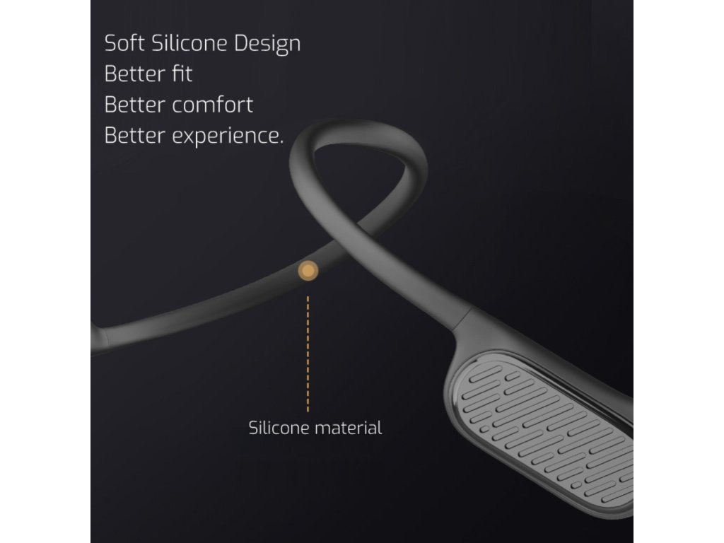 Technologie kostního vedení zvuku (Bone conduction) Hudbu a hovory přenáší vibracemi přímo na lícní kosti, takže uši zůstávají volné a vnímáte dění kolem sebe – ideální pro bezpečný trénink.